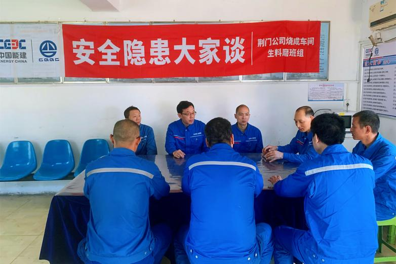 早上7點45分,嘹亮的宣誓聲響徹荊門公司燒成車間班前會,職工們整齊穿戴好勞保防護用品,開啟了一天的工作。